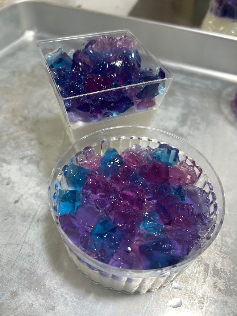 紫陽花のような可愛い色合いの、少し酸味の効いたゼリーに